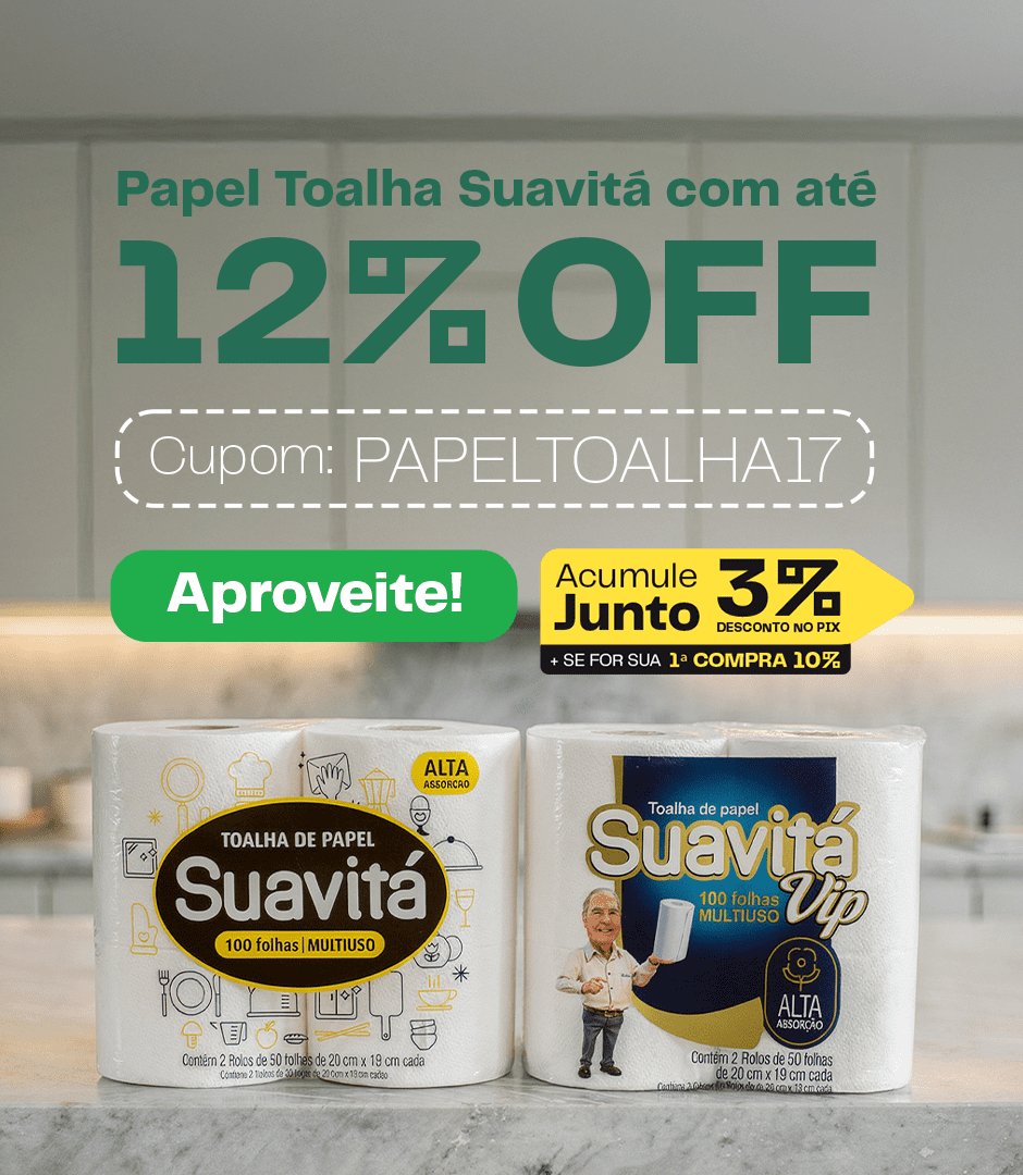 Toalha de Papel para Cozinha 19x20cm Suavitá Vip C/2 Rolos 100 Folhas
