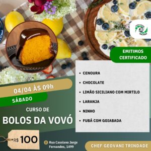 Curso de Bolos da Vovó dia 04/04/2026 – Sábado 09h