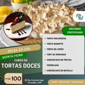 Curso de Tortas Doces dia 09/04/2026 – Quinta-feira 14h