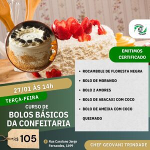 Curso de Bolos Básicos da Confeitaria dia 27/01/2026 – Terça-feira 14h
