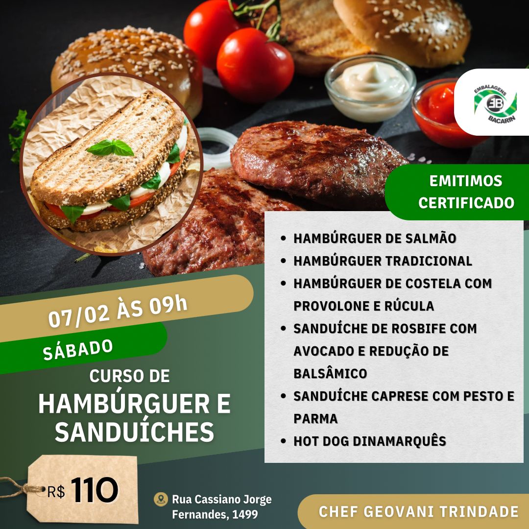 - Hambúrguer de Costela com Provolone e Rúcula;