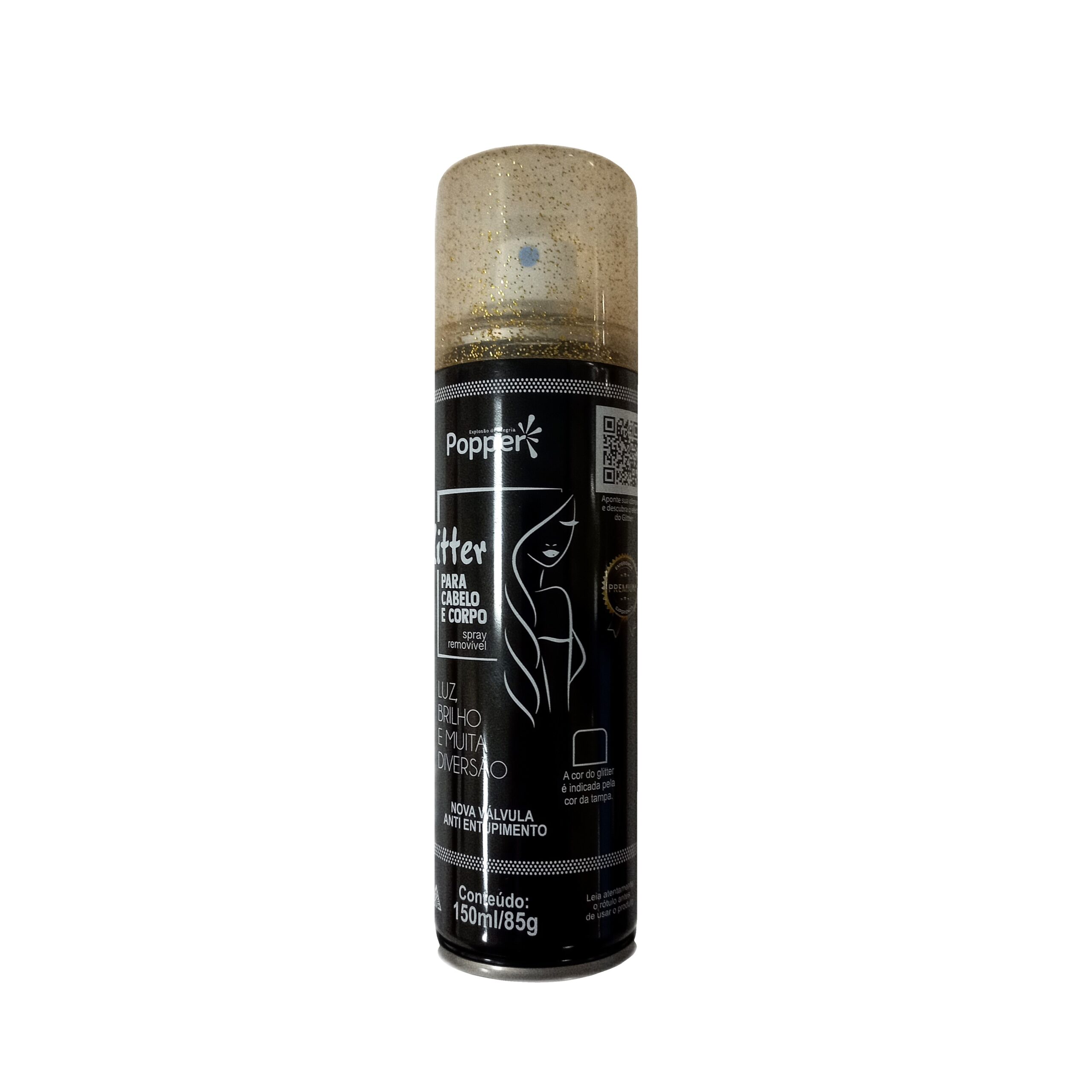 Spray Glitter Cabelo e Corpo Dourado 150ml Popper - Embalagens Bacarin