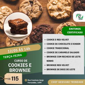 Curso de Cookies e Brownie dia 12/05/2026 – Terça-feira 14h