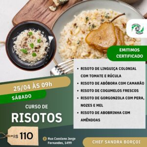 Curso de Risotos dia 25/04/2026 – Sábado 09h